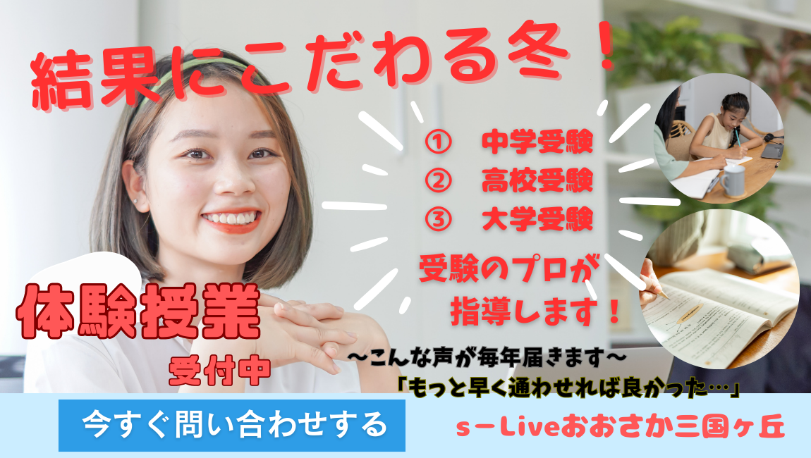 僕が、三国ヶ丘高校に合格できたのは、s-Liveおおさか三国ヶ丘校の先生方のおかげです。中2の終わりごろから定期テストでは点数は取れるけれど、実力テストや模擬…