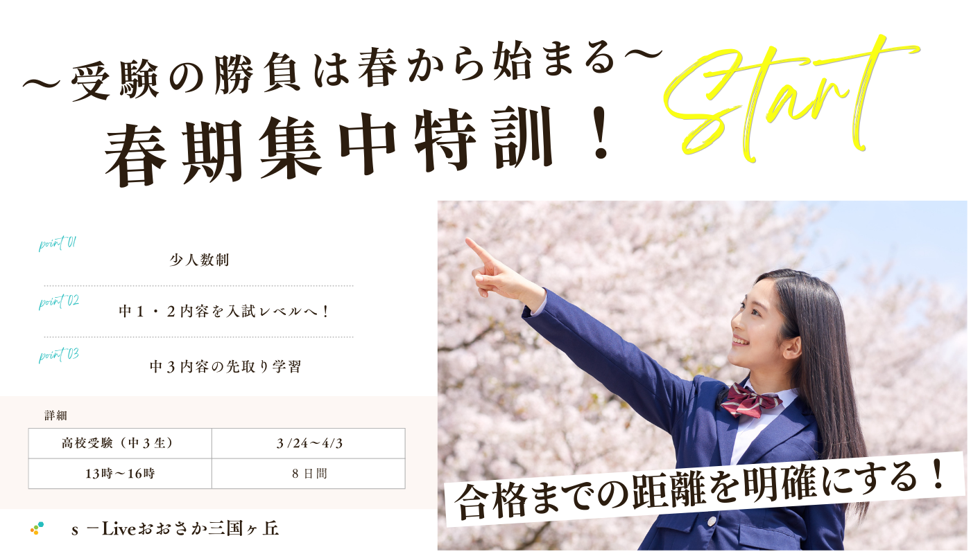 中3生対象 春期集中特訓のご案内 :定員まであと3名